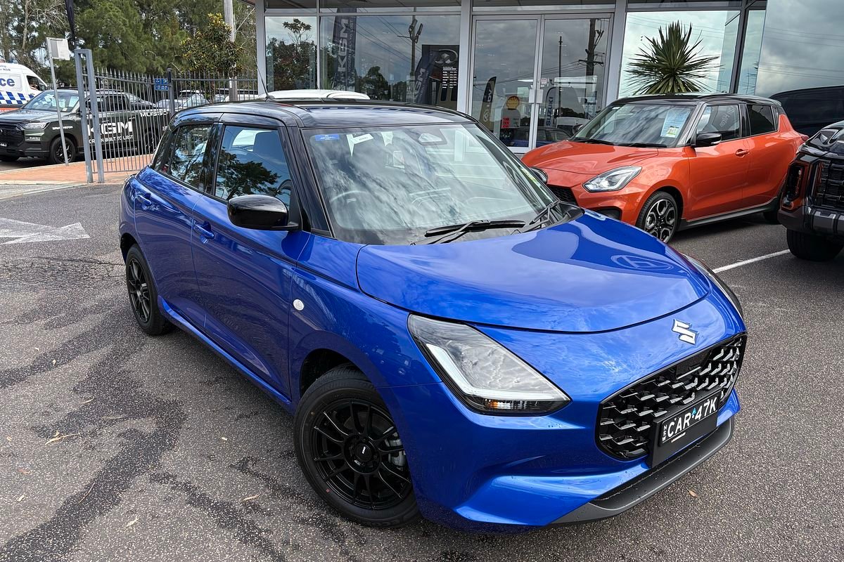 Come check out our 2025 Suzuki Swift Hybrid Manual in Frontier Blue Pearl with Black Roof before it's gone!