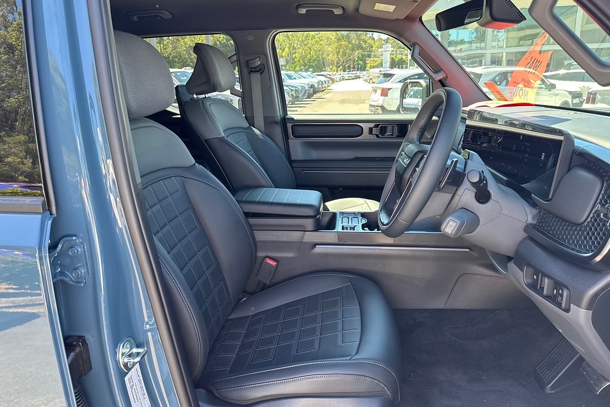 Introducing the striking New Denim Blue (DNB) 2025 Kia Tasman X-Line TK, a versatile Ute designed for those who demand performance and functionality from their vehicle. Equipped with a robust diesel engine and an automatic transmission, this Ute is perfectly suited for tradespeople, contractors, and workers who require a reliable workhorse for hauling cargo, tools, and equipment. The Tasman X-Line boasts a spacious tray, allowing for ample storage space, ensuring you can transport everything you need for the job at hand.